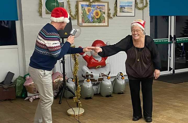 Guests enjoyed a delicious fish-and-chip feast, followed by music and dancing led by the lovely Dance with Sarah. It was a joyful celebration for people living with dementia, their families, and their carers — a chance to come together, relax, and share in the spirit of the season.