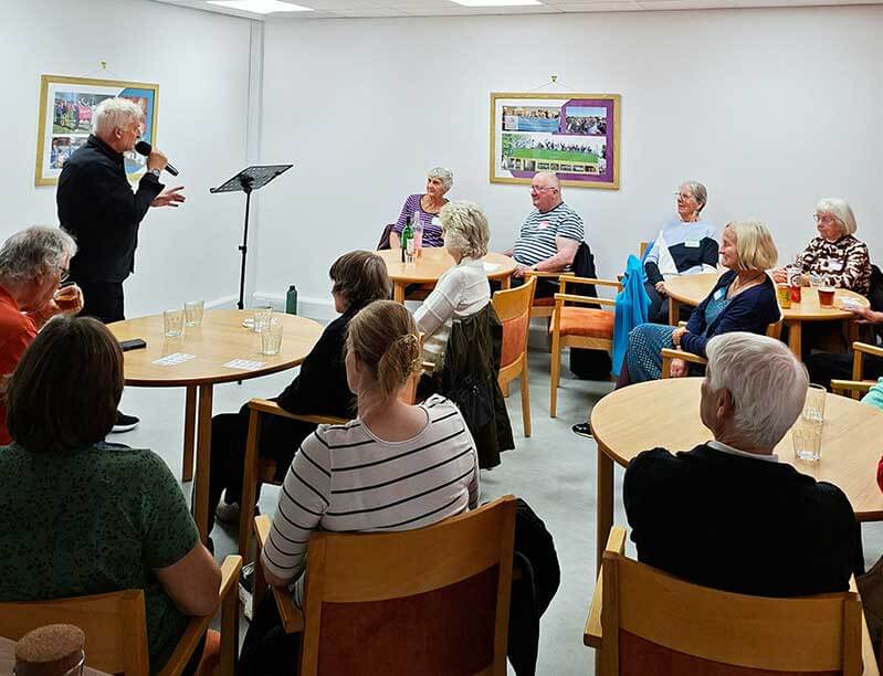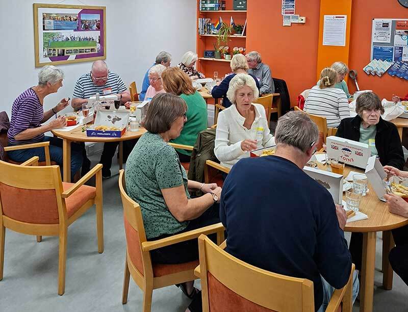 People living with dementia, and their nearest and dearest, got together to enjoy a fish and chip supper, with ice lollies for dessert and a raffle and live entertainment with Darren Clewlow. Kim said ‘It was brilliant to listen to the banter and to see people really enjoying themselves. Darren’s lively repertoire got people up to boogie and a great time was had by all. We are really looking forward to planning the next social.’